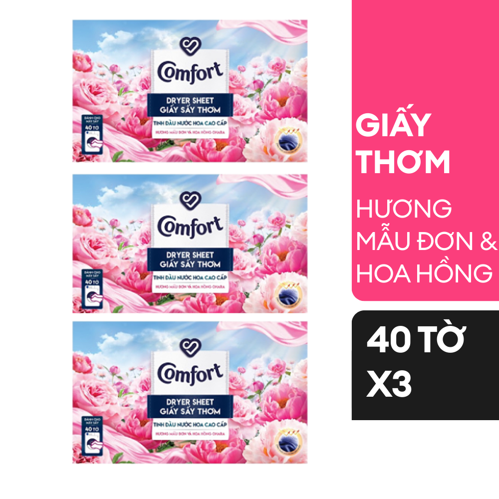 - Cho 1 – 2 tờ* Giấy sấy thơm Comfort vào máy sấy quần áo trước khi bắt đầu chu trình sấy và sấy chung với áo quần vừa được giặt sạch.