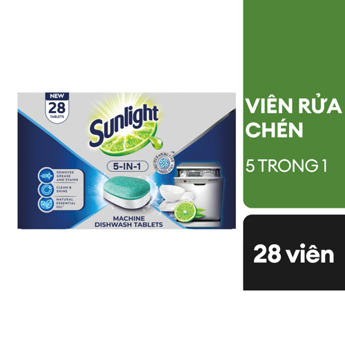 Viên rửa chén Sunlight 5 trong 1 hộp 28 viên