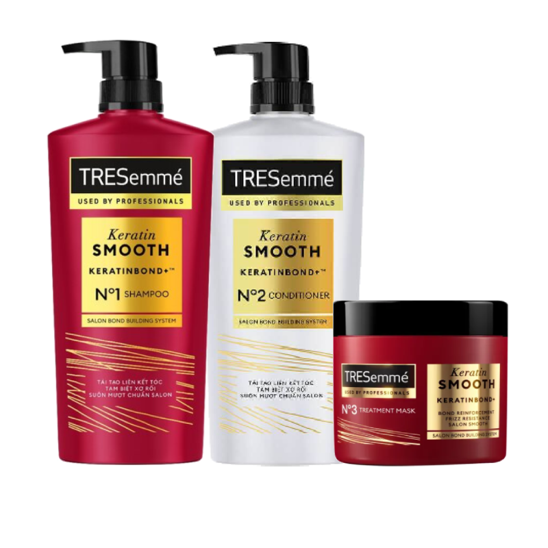 Combo Dầu gội + Dầu xả + Kem ủ Tresemmé Keratin Smooth Vào nếp mượt mà
