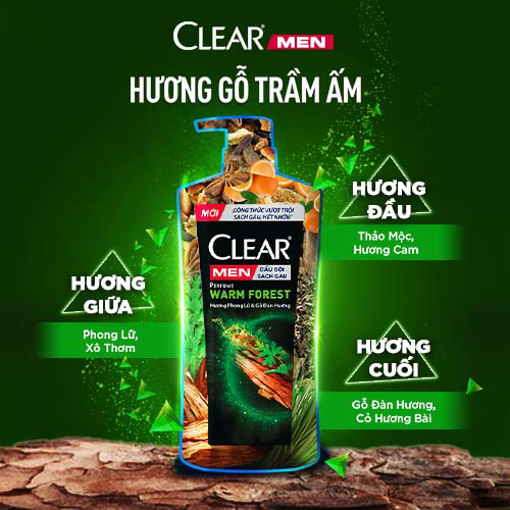 DẦU GỘI CLEAR MEN PERFUME WARM FOREST ĐÁNH BAY GÀU NGỨA & LƯU HƯƠNG NƯỚC HOA ĐẲNG CẤP 24 GIỜ