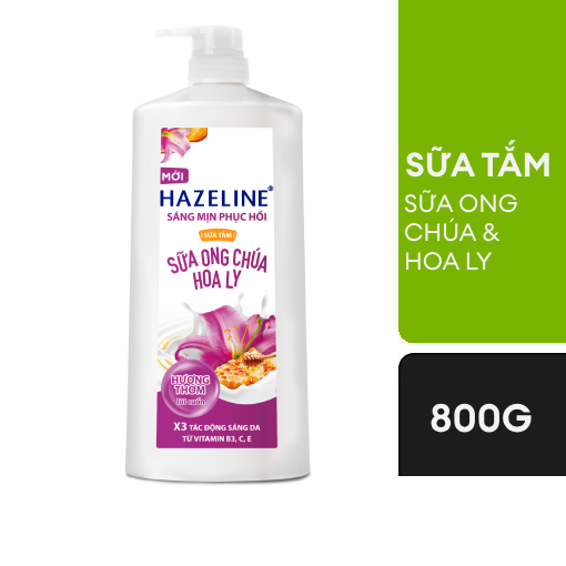 SỮA TẮM HAZELINE DƯỠNG THỂ TRẮNG SÁNG MỊN & PHỤC HỒI DA TỪ THIÊN NHIÊN SỮA ONG CHÚA HOA LY