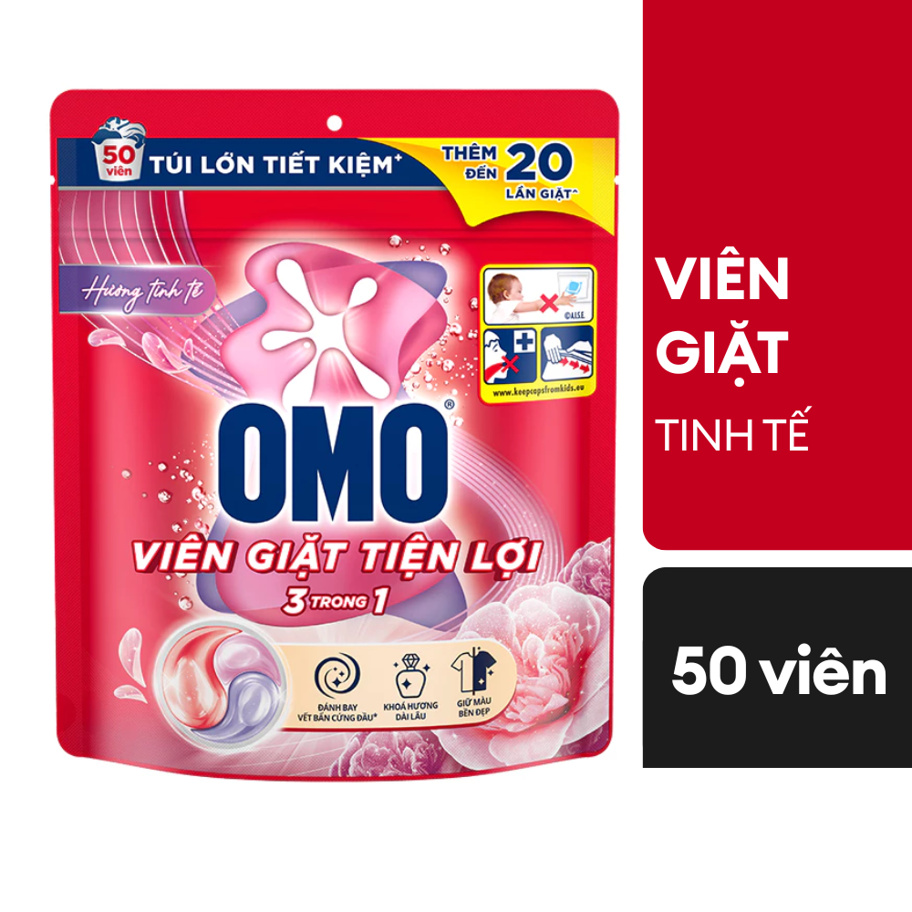 Viên giặt OMO 3trong1 hương Tinh Tế 50 viên 525g